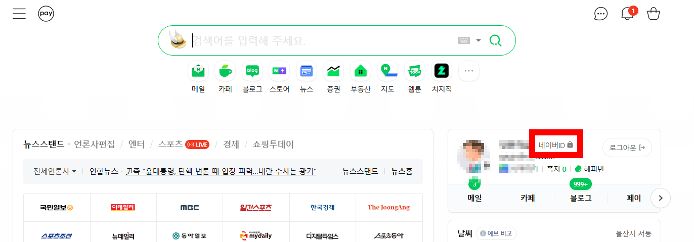1. 네이버 홈페이지에 접속하여 부동산지인에서 사용하는 네이버ID로 로그인을 하세요.