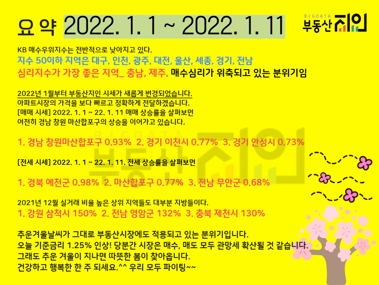 아파트 시장동향 [2022. 1. 1 ~ 1. 11]