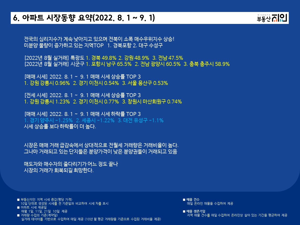 [월간] 아파트 시장동향(2022. 8. 1 ~ 9. 1)