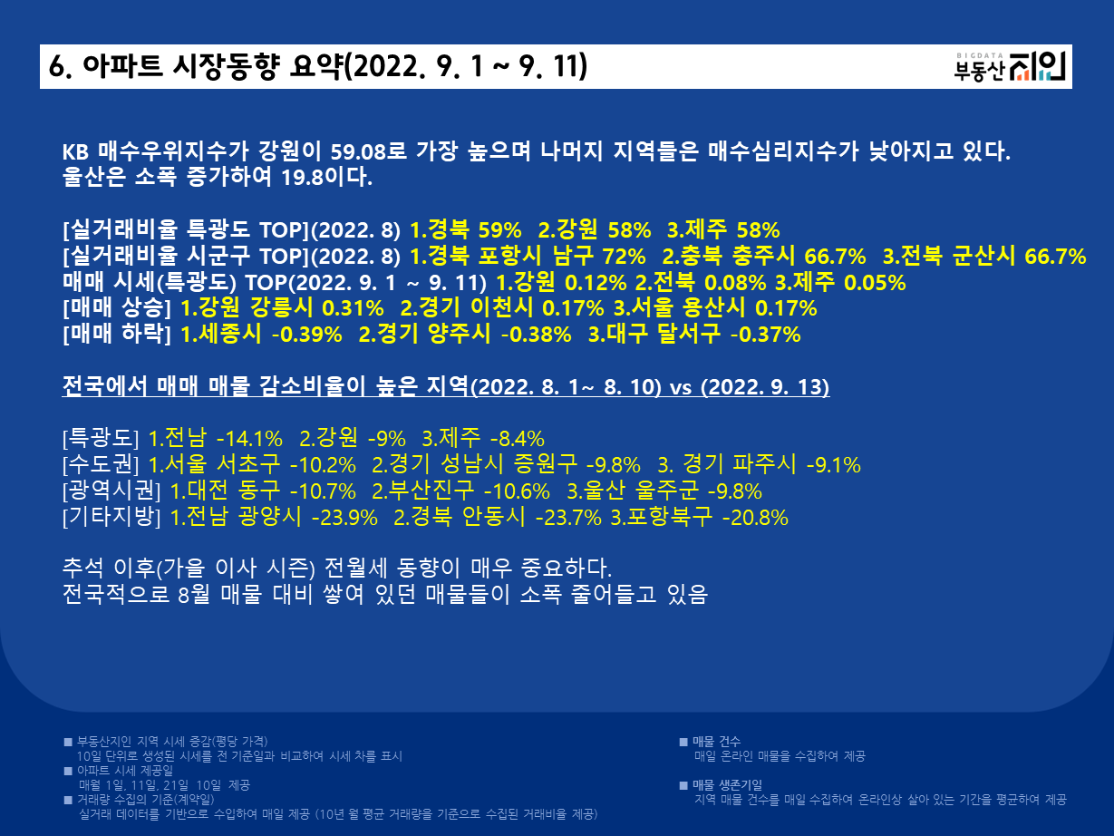 아파트 시장동향(2022. 9. 1 ~ 9. 11)