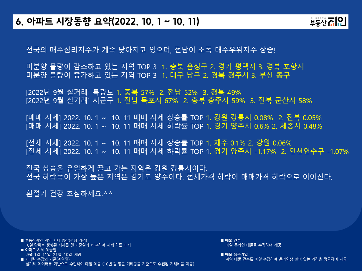 [월간]아파트 시장동향(2022. 9. 21 ~ 10. 21)