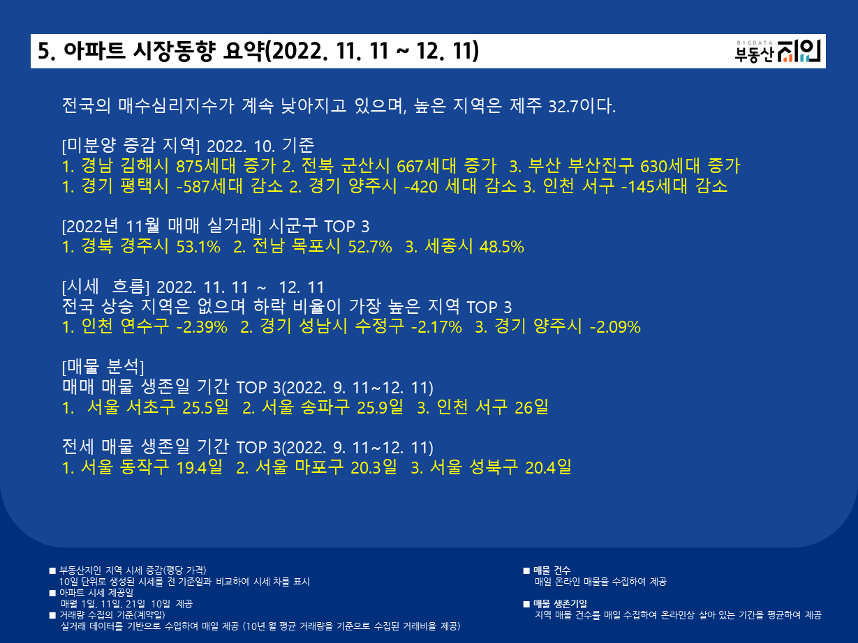 월간 아파트 시장동향(2022. 11. 11 ~ 12. 11)