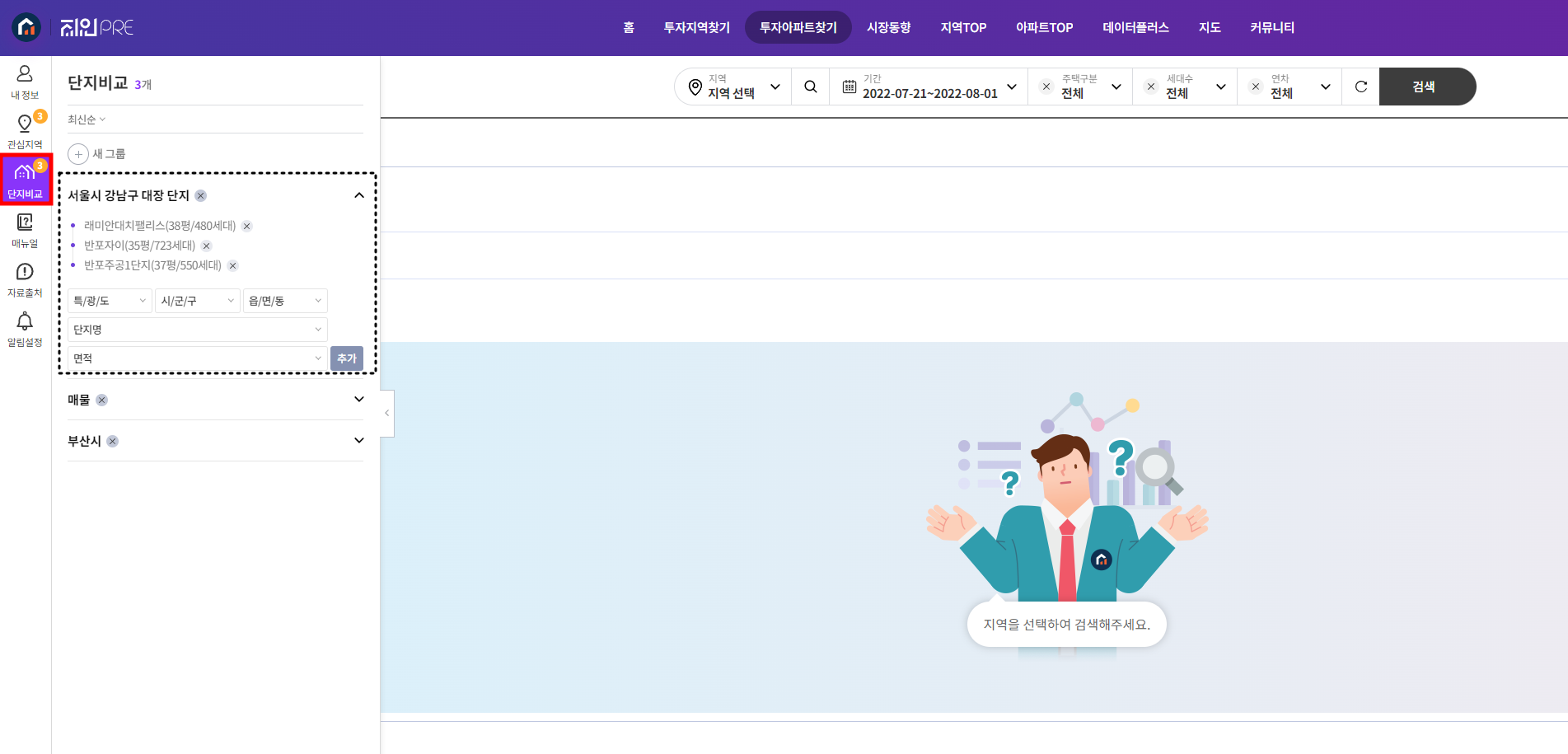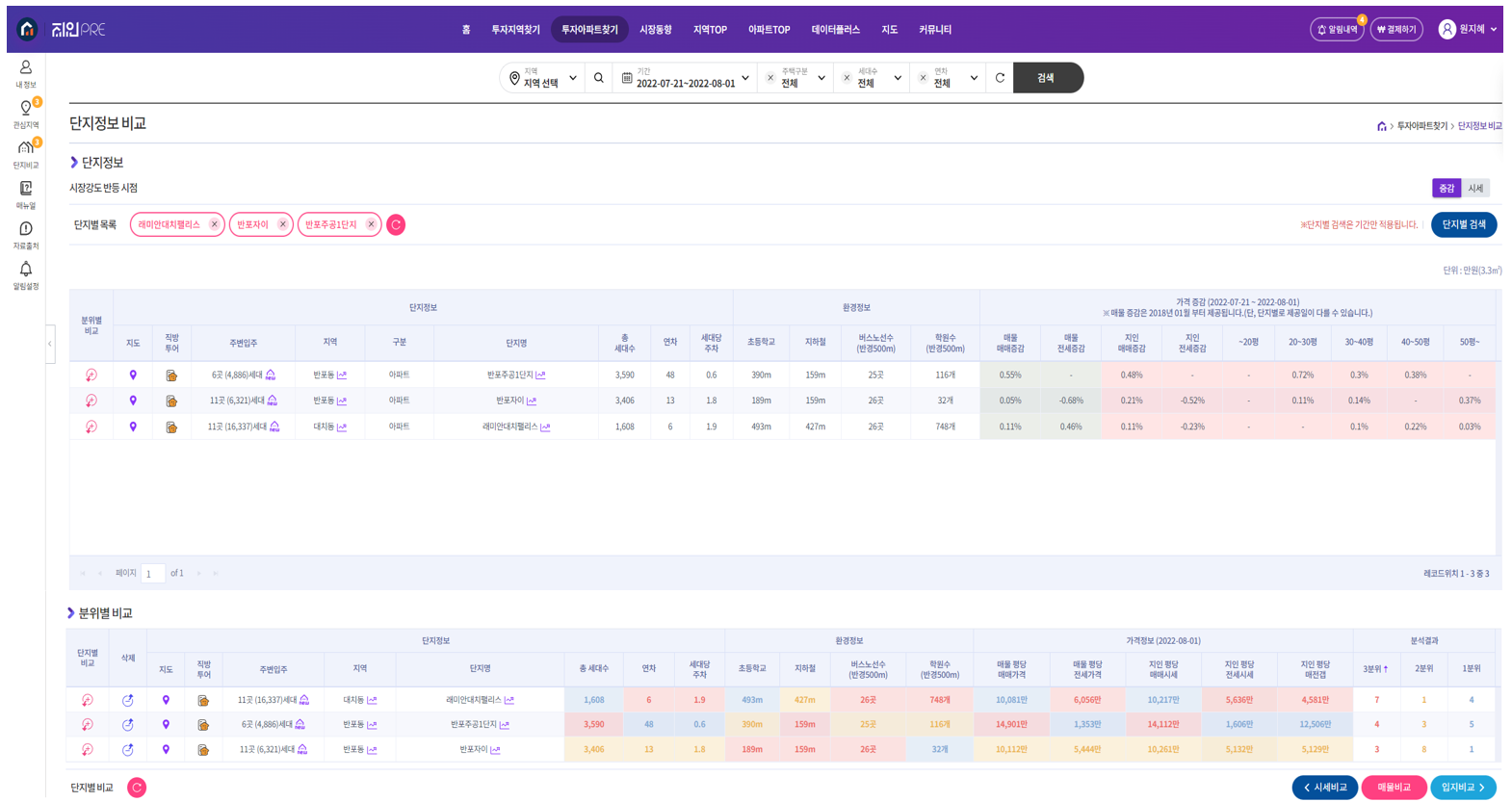 투자 아파트 찾기에서 단지 비교 관련 추가된 기능이 있어 안내드립니다.