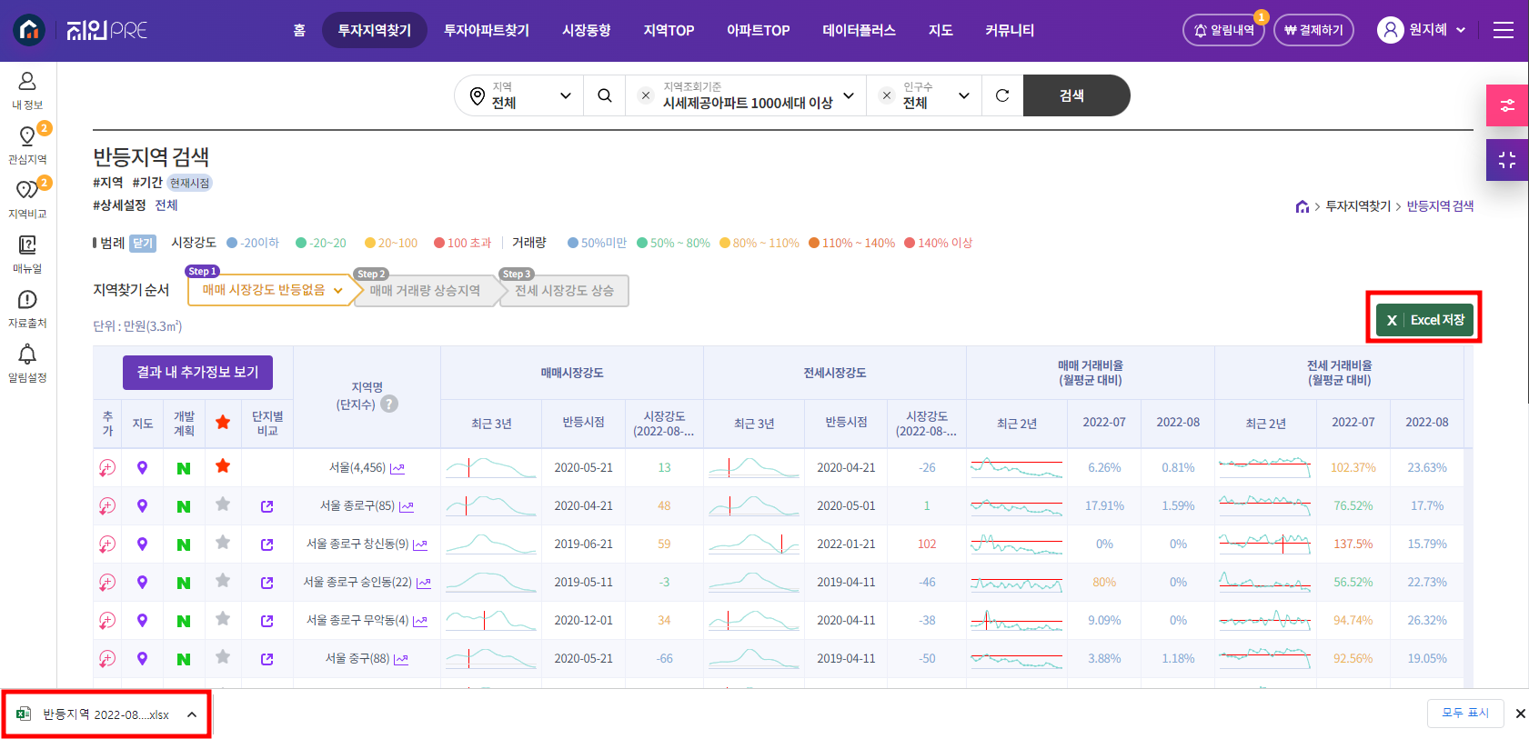 프리미엄 내 모든 데이터를 엑셀로 다운로드할 수 있는 기능을 제공합니다.